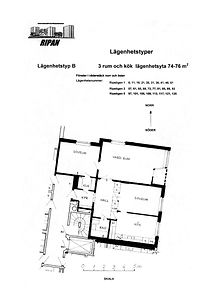 Lägenhet B, 3 rum & kök, 74-76 kvm