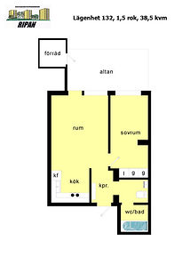 Lägenhet 132, 1.5 rum & kök, 38.5 kvm